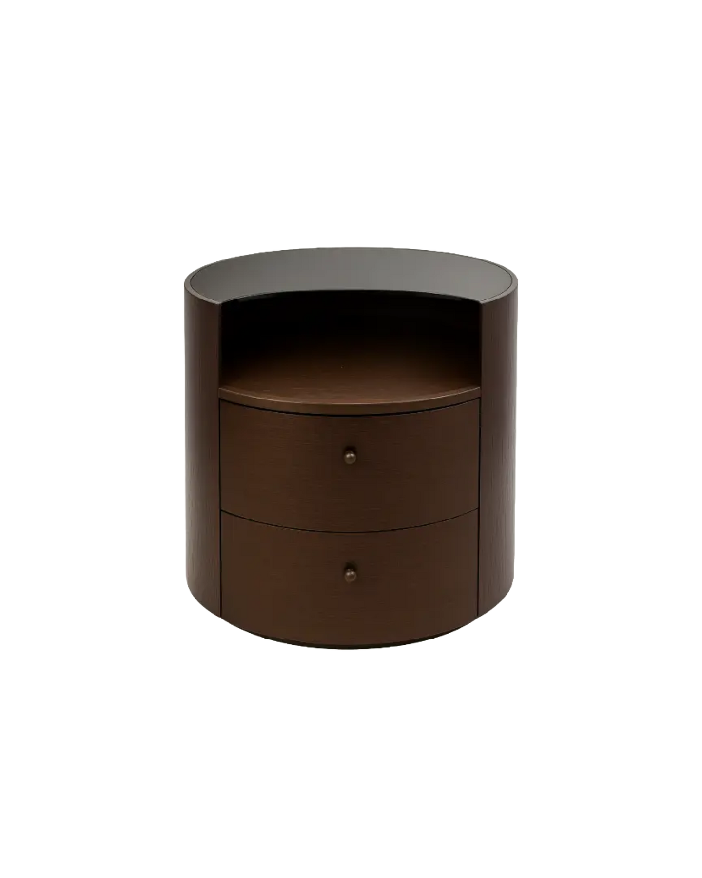 The Firmo bedside table features a sleek brown finish with a glass top that adds a touch of modern elegance. Equipped with two spacious drawers, it provides ample storage while maintaining a refined and sophisticated look, perfect for enhancing your bedroom’s style and functionality.