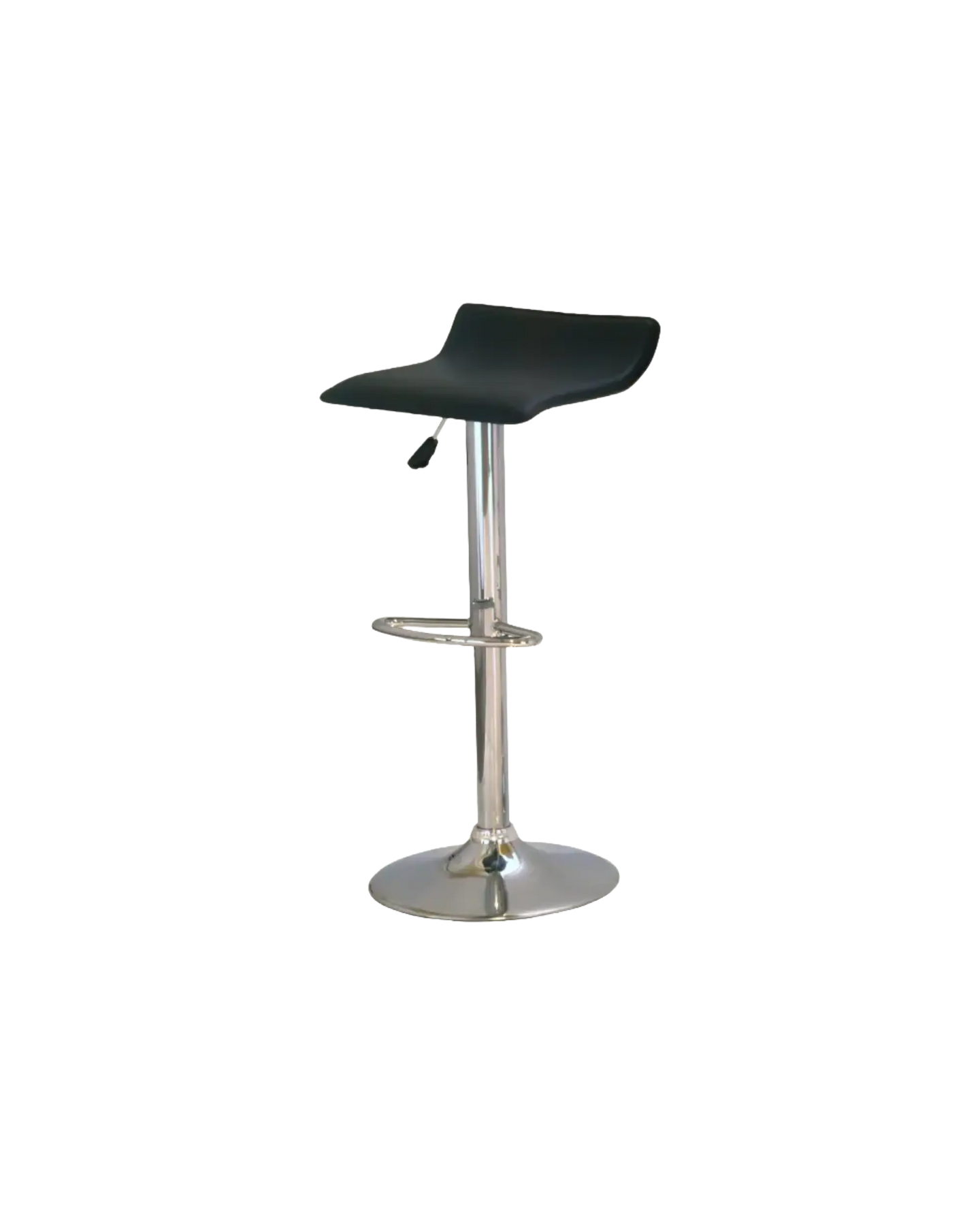 The Model 8 black bar stool presents a study in refined minimalism, featuring a lustrous chrome framework that creates a striking contrast against its sleek black seat.